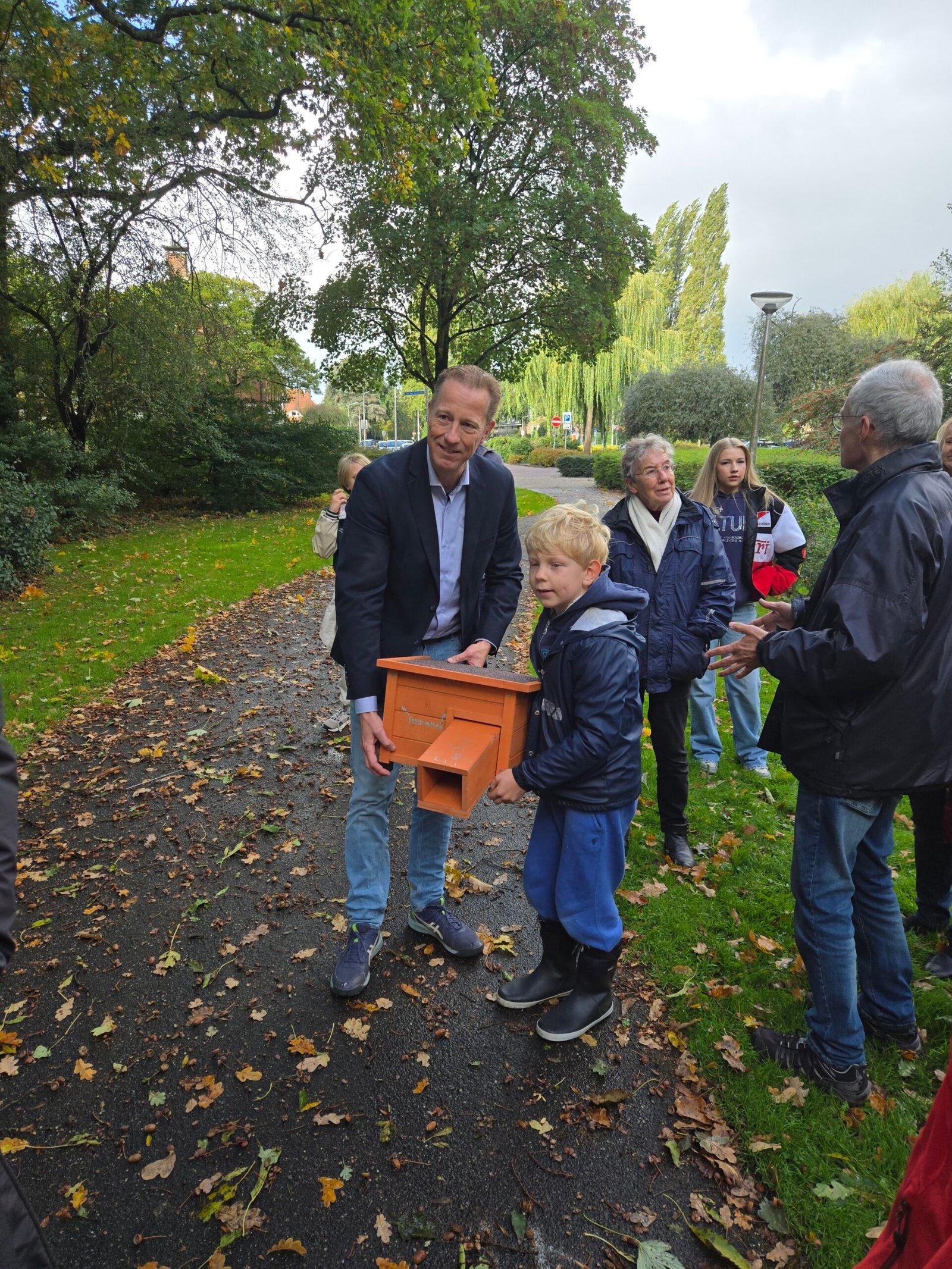 Na een aantal e-mails was ik er met de gemeente uit. Mijn egelhotel mocht naast de Kruiskerk in Amstelveen komen te staan. Op 4 oktober 2025 (dierendag!) was de ceremoniale plaatsen waar zelfs de wethouder van Dierenwelzijn, de heer Frank Berkhout bij aanwezig was.